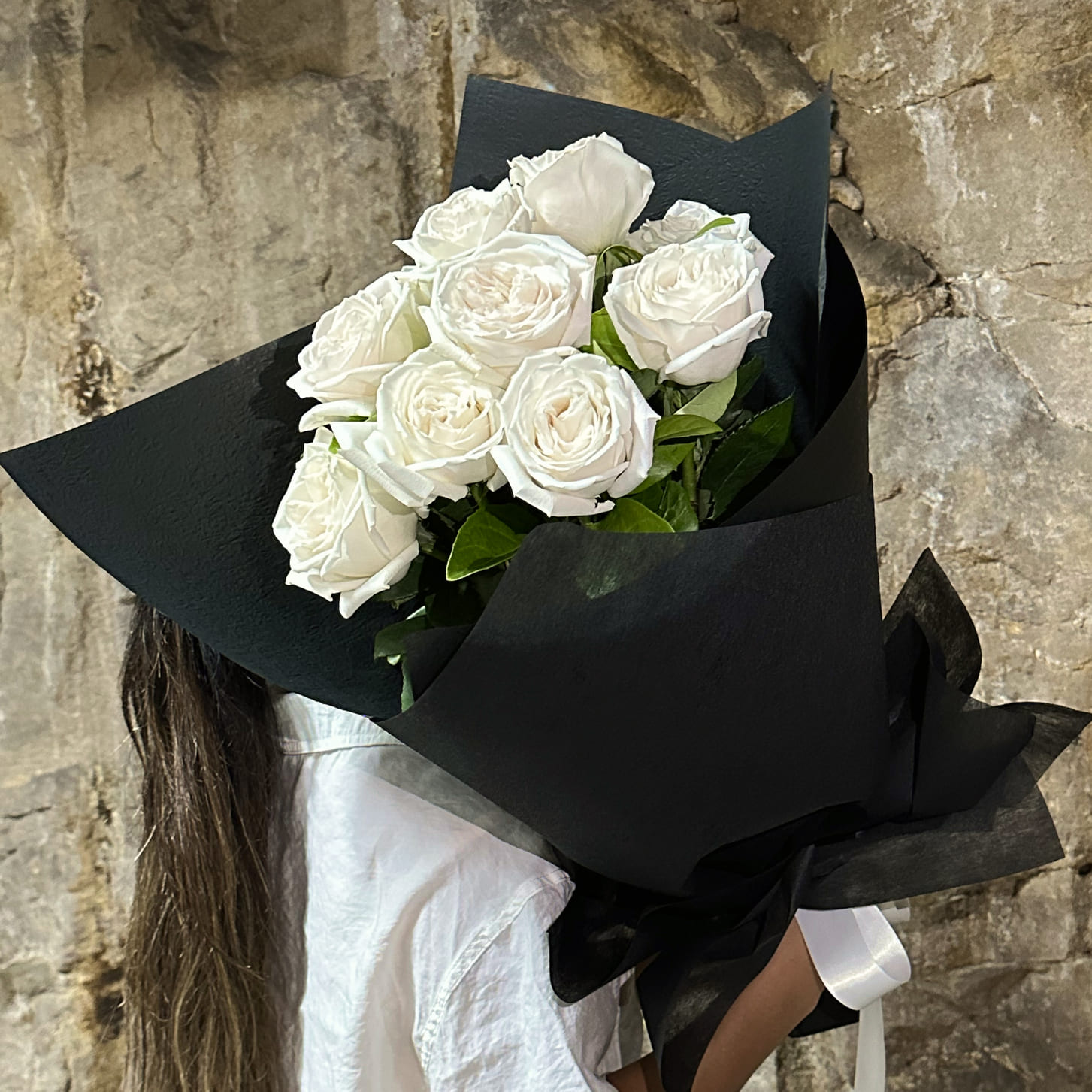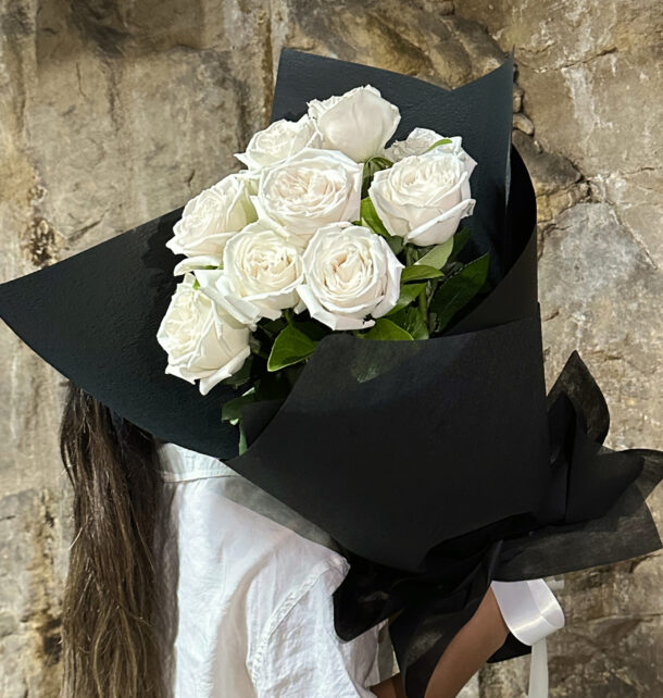 12 long stem premium white roses