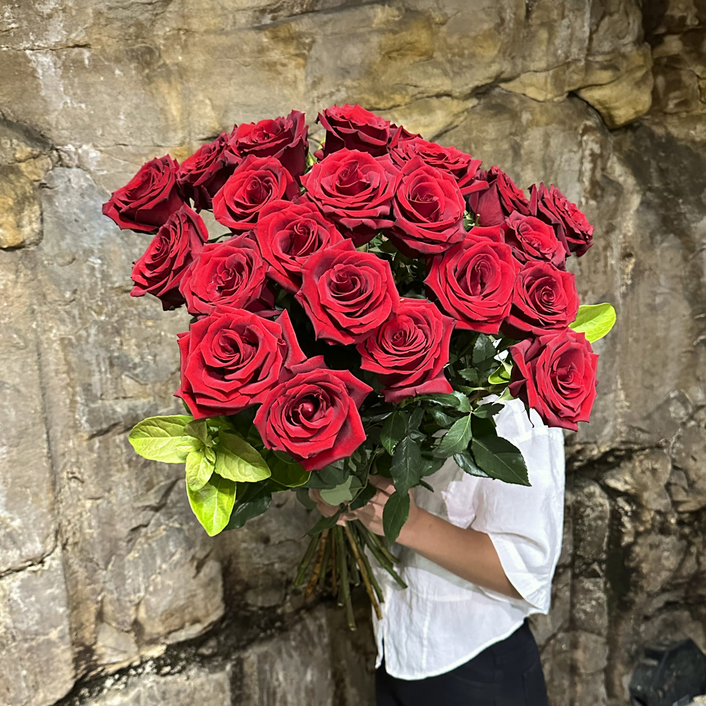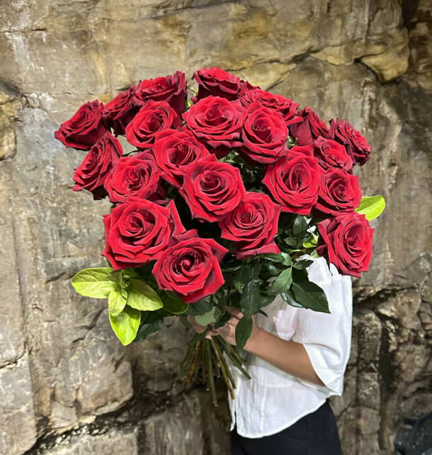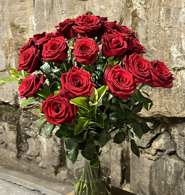 24 long stem premium red roses beautifully gift wrapped